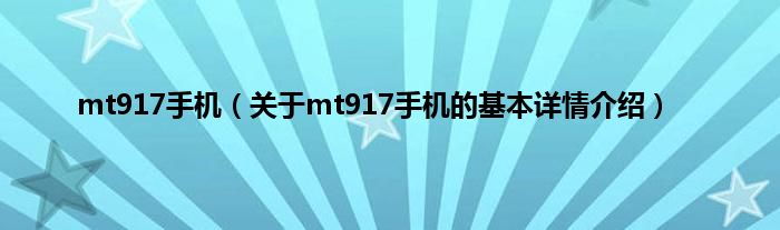 本文关于mt917手机的基本详情介绍就讲解完毕,希望对大家有所帮助。