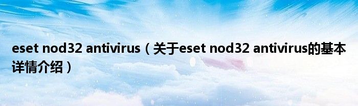 本文关于eset nod32 antivirus的基本详情介绍就讲解完毕,希望对大家有所帮助。