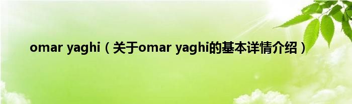 本文关于omar yaghi的基本详情介绍就讲解完毕,希望对大家有所帮助。