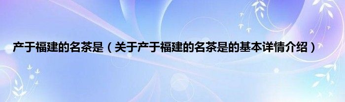 产于福建的名茶是(关于产于福建的名茶是的基本详情介绍)