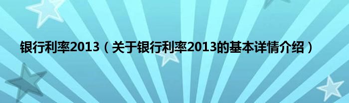 本文关于银行利率2013的基本详情介绍就讲解完毕,希望对大家有所帮助。