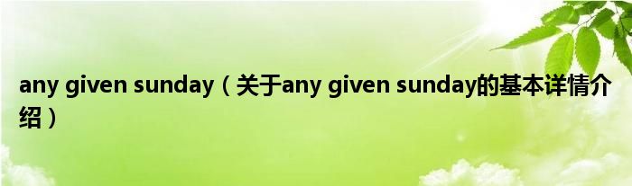 本文关于any given sunday的基本详情介绍就讲解完毕,希望对大家有所帮助。
