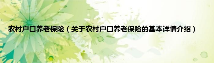 本文关于农村户口养老保险的基本详情介绍就讲解完毕,希望对大家有所帮助。