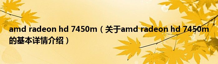 本文关于amd radeon hd 7450m的基本详情介绍就讲解完毕,希望对大家有所帮助。