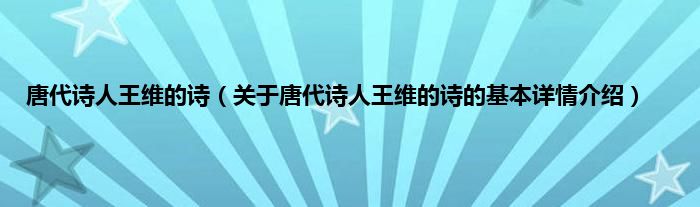本文关于唐代诗人王维的诗的基本详情介绍就讲解完毕,希望对大家有所帮助。
