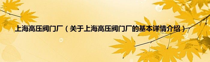 本文关于上海高压阀门厂的基本详情介绍就讲解完毕,希望对大家有所帮助。
