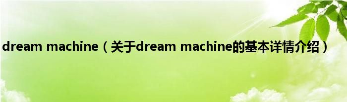 本文关于dream machine的基本详情介绍就讲解完毕,希望对大家有所帮助。
