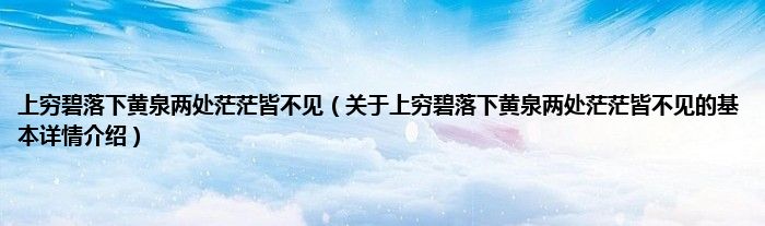 本文关于上穷碧落下黄泉两处茫茫皆不见的基本详情介绍就讲解完毕,希望对大家有所帮助。