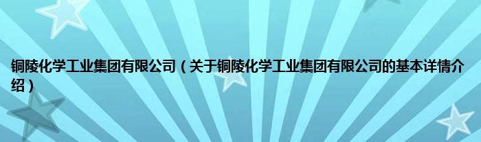 本文关于铜陵化学工业集团有限公司的基本详情介绍就讲解完毕,希望对大家有所帮助。