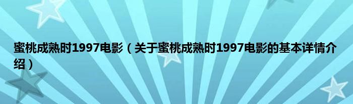 本文关于蜜桃成熟时1997电影的基本详情介绍就讲解完毕,希望对大家有所帮助。