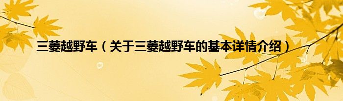 本文关于三菱越野车的基本详情介绍就讲解完毕,希望对大家有所帮助。