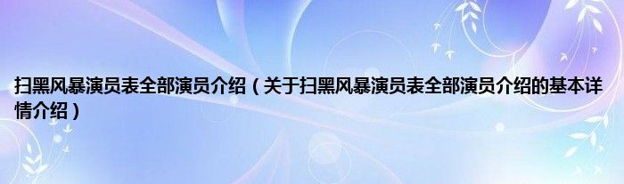 本文关于扫黑风暴演员表全部演员介绍的基本详情介绍就讲解完毕,希望对大家有所帮助。