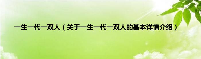 本文关于一生一代一双人的基本详情介绍就讲解完毕,希望对大家有所帮助。