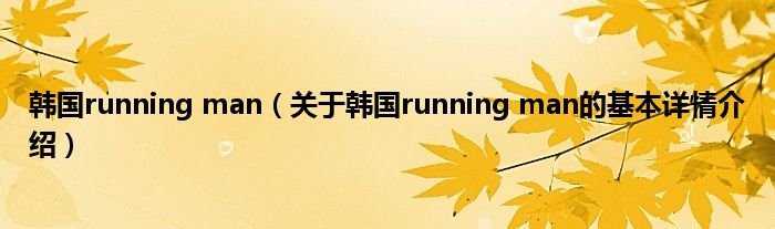 本文关于韩国running man的基本详情介绍就讲解完毕,希望对大家有所帮助。