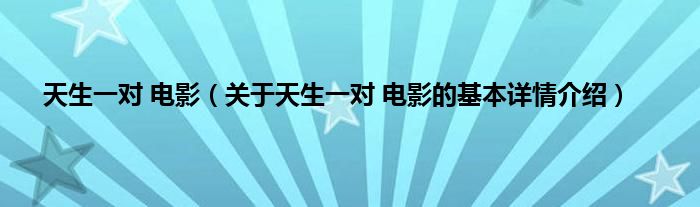 本文关于天生一对 电影的基本详情介绍就讲解完毕,希望对大家有所帮助。