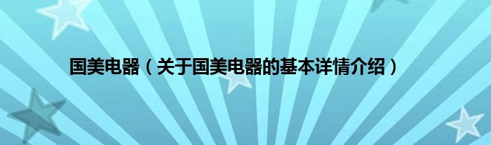 本文关于国美电器的基本详情介绍就讲解完毕,希望对大家有所帮助。