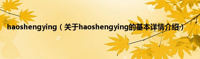 haoshengying(关于haoshengying的基本详情介绍)