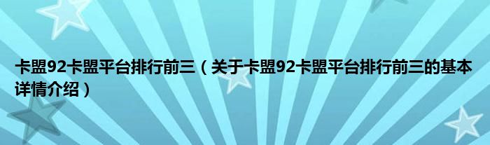 卡盟92卡盟平台排行前三(关于卡盟92卡盟平台排行前三的基本详情介绍)