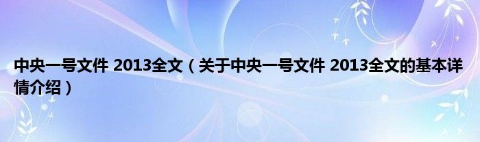 中央一号文件 2013全文(关于中央一号文件 2013全文的基本详情介绍)