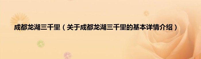 本文关于成都龙湖三千里的基本详情介绍就讲解完毕,希望对大家有所帮助。