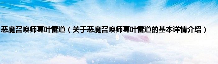 本文关于恶魔召唤师葛叶雷道的基本详情介绍就讲解完毕,希望对大家有所帮助。