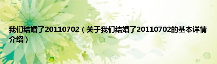 本文关于我们结婚了20110702的基本详情介绍就讲解完毕,希望对大家有所帮助。