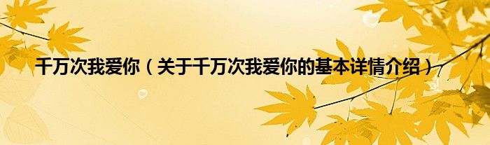 本文关于千万次我爱你的基本详情介绍就讲解完毕,希望对大家有所帮助。