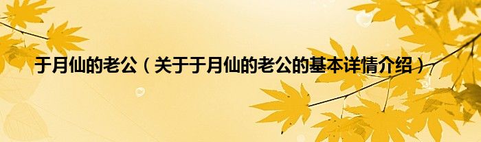 于月仙的老公(关于于月仙的老公的基本详情介绍)