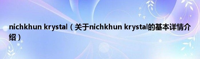 本文关于nichkhun krystal的基本详情介绍就讲解完毕,希望对大家有所帮助。