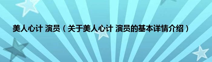 本文关于美人心计 演员的基本详情介绍就讲解完毕,希望对大家有所帮助。