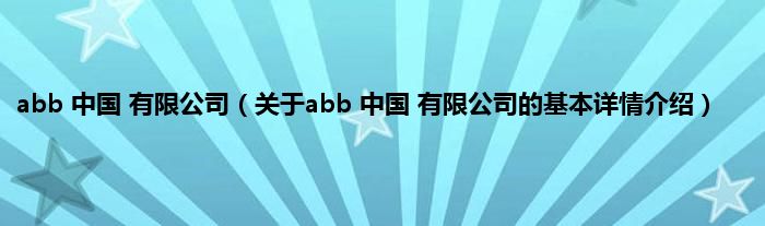 本文关于abb 中国 有限公司的基本详情介绍就讲解完毕,希望对大家有所帮助。