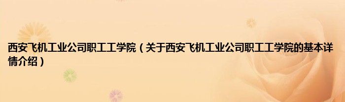 本文关于西安飞机工业公司职工工学院的基本详情介绍就讲解完毕,希望对大家有所帮助。