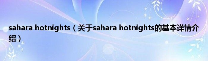 本文关于sahara hotnights的基本详情介绍就讲解完毕,希望对大家有所帮助。