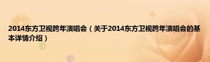 本文关于2014东方卫视跨年演唱会的基本详情介绍就讲解完毕,希望对大家有所帮助。