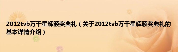 本文关于2012tvb万千星辉颁奖典礼的基本详情介绍就讲解完毕,希望对大家有所帮助。