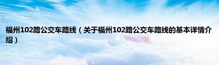 福州102路公交车路线(关于福州102路公交车路线的基本详情介绍)