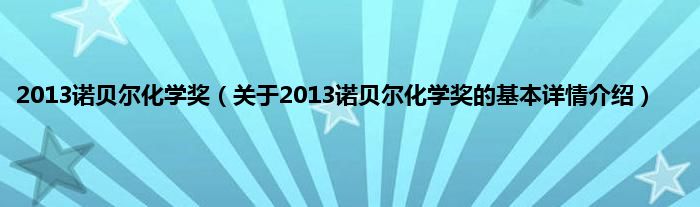 本文关于2013诺贝尔化学奖的基本详情介绍就讲解完毕,希望对大家有所帮助。