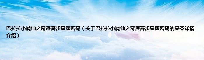 本文关于巴拉拉小魔仙之奇迹舞步星座密码的基本详情介绍就讲解完毕,希望对大家有所帮助。