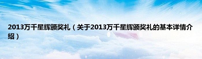 2013万千星辉颁奖礼(关于2013万千星辉颁奖礼的基本详情介绍)