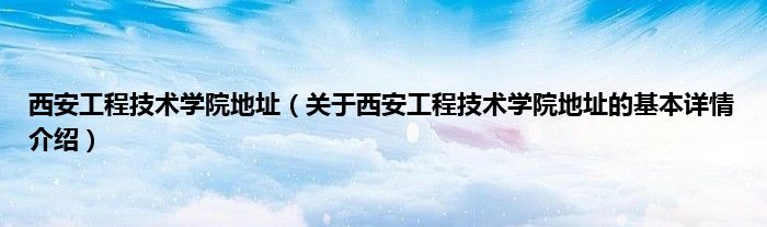 西安工程技术学院地址(关于西安工程技术学院地址的基本详情介绍)