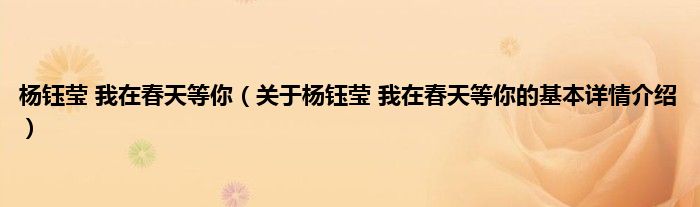 杨钰莹 我在春天等你(关于杨钰莹 我在春天等你的基本详情介绍)