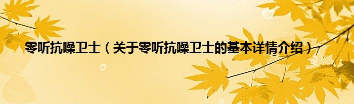 本文关于零听抗噪卫士的基本详情介绍就讲解完毕,希望对大家有所帮助。