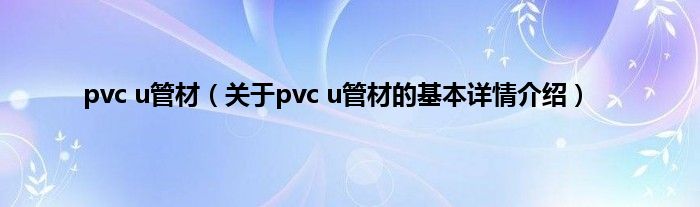 本文关于pvc u管材的基本详情介绍就讲解完毕,希望对大家有所帮助。