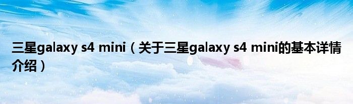 本文关于三星galaxy s4 mini的基本详情介绍就讲解完毕,希望对大家有所帮助。