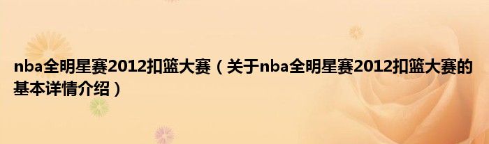 本文关于nba全明星赛2012扣篮大赛的基本详情介绍就讲解完毕,希望对大家有所帮助。