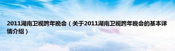本文关于2011湖南卫视跨年晚会的基本详情介绍就讲解完毕,希望对大家有所帮助。
