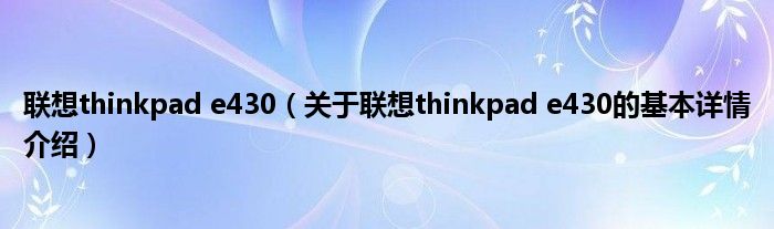联想thinkpad e430(关于联想thinkpad e430的基本详情介绍)