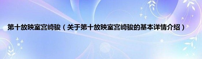 本文关于第十放映室宫崎骏的基本详情介绍就讲解完毕,希望对大家有所帮助。
