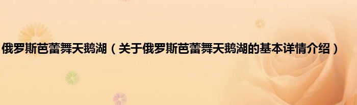 本文关于俄罗斯芭蕾舞天鹅湖的基本详情介绍就讲解完毕,希望对大家有所帮助。