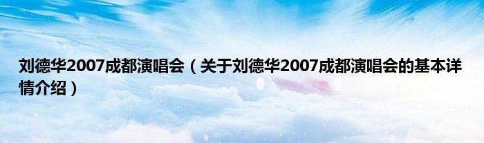 本文关于刘德华2007成都演唱会的基本详情介绍就讲解完毕,希望对大家有所帮助。